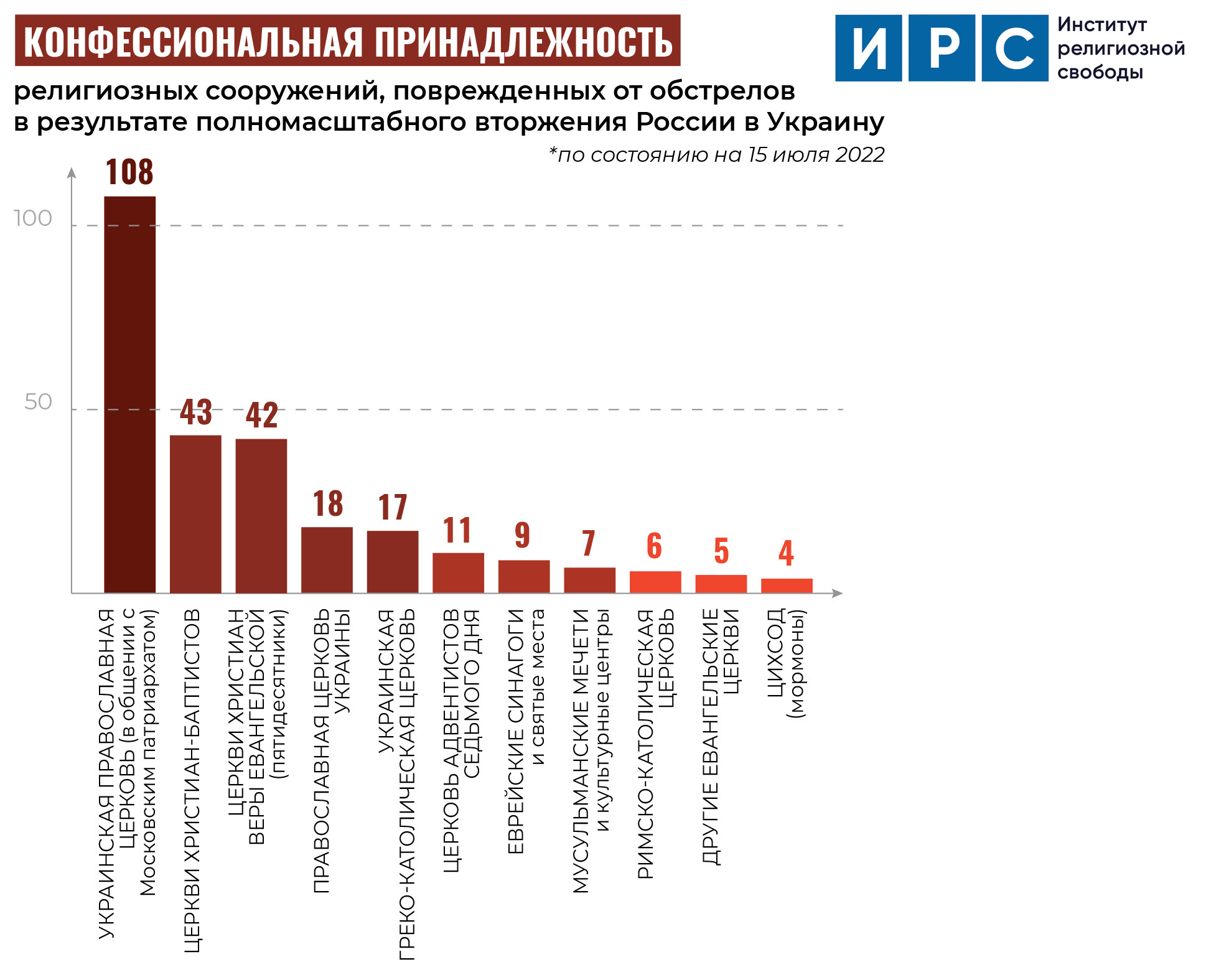 Этот доклад ИРС охватывает период новой волны российской агрессии против Украины с 24 февраля по 15 июля 2022 года, а также содержит анализ состояния свободы вероисповедания на украинском полуострове Крым, оккупированном Россией с 2014 года.